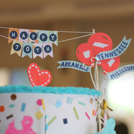 I created 13 large paper cake centerpieces and 6 small paper cake slices for an event for Le Bonheur Children’s Hospital. These centerpieces recalled the origins of the Le Bonheur story while highlighting the future of the hospital to celebrate a current milestone: 70 years of helping mid-south children receive the care they need.It all came together as Le Bonheur’s National Leadership Council kicked off the hospital’s 70th birthday celebrations at Memphis Botanic Garden.